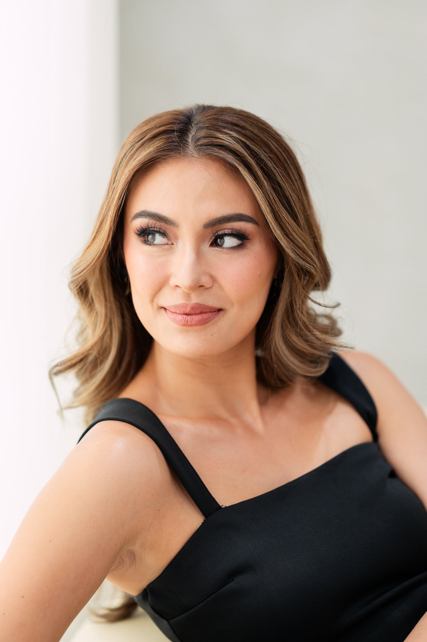 • Sleek, floor-length gown with a fitted silhouette